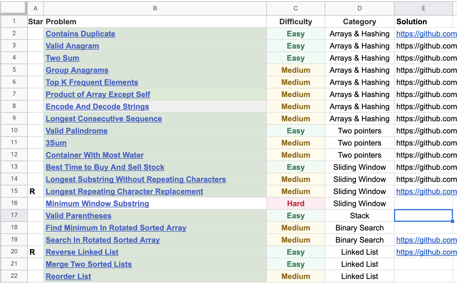 엑셀보다는 더 간단하게 내 프로그래스를 트래킹 하고 싶다면 Neetcode를 매우 추천한다!
