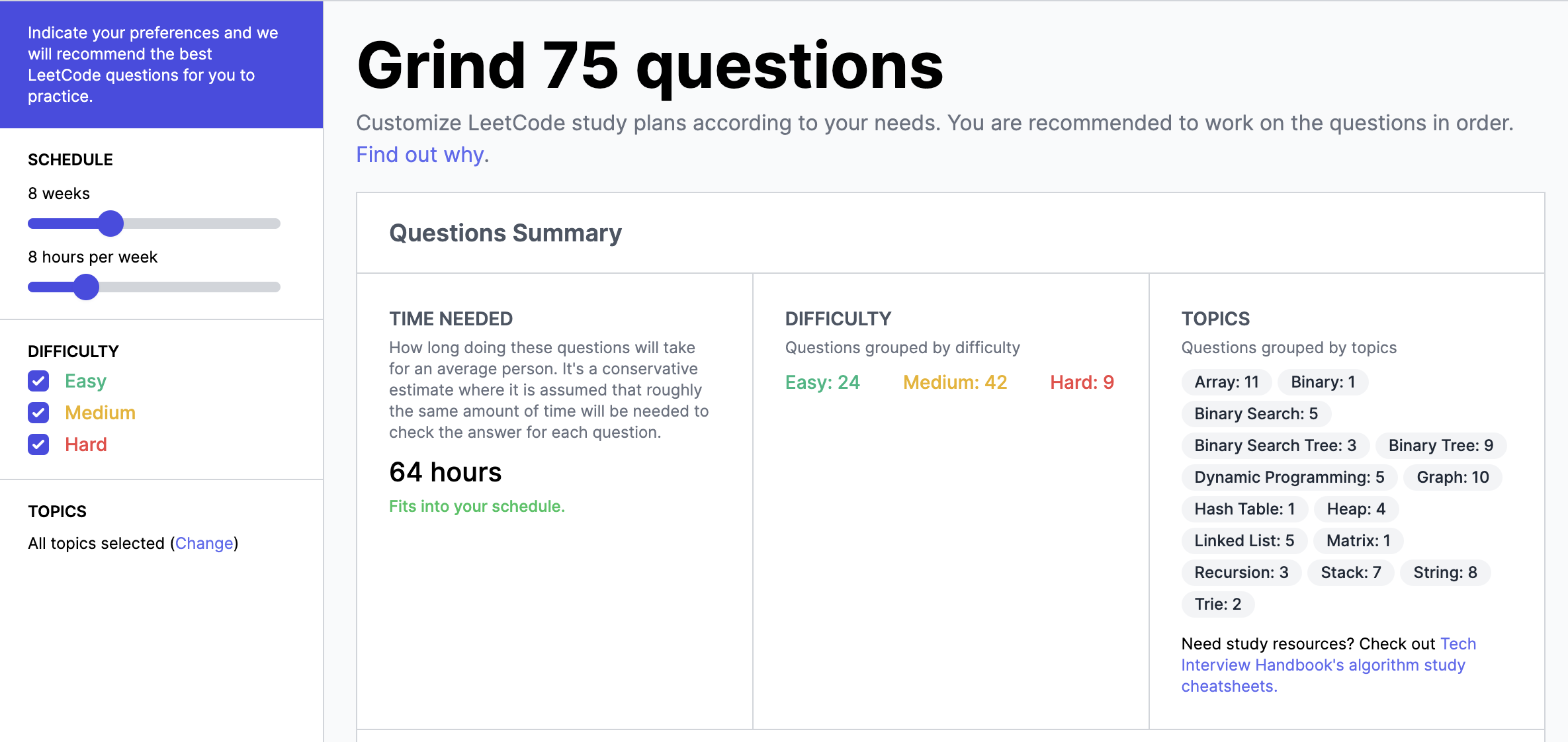 Grind 75 - A better Blind 75 you can customize, by the author of Blind 75